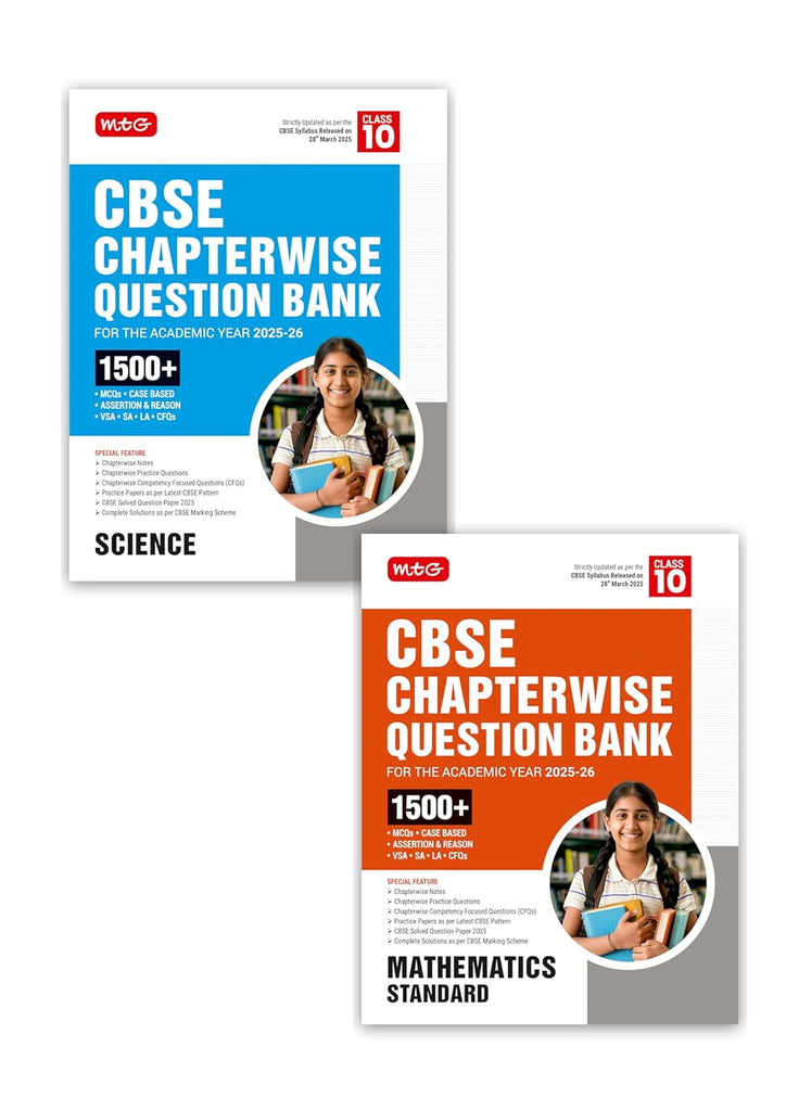 • Name : MTG CBSE Chapterwise Question Bank Class 10 Science & Mathematics Standard For 2026 Board Exam | As Per Latest CBSE Syllabus Released on 28 March 2025 (Set of 2 Books)