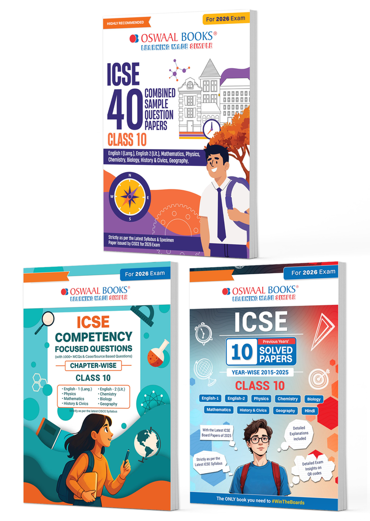ICSE Class 10, 40 Combined Sample Question Papers + Competency Focussed Questions + 10 Previous Years' Solved Papers Physics, Chemistry, Maths, Biology, English Paper-1, English Paper-2, History& Civics, Geography (Set of 3 Books) for 2026 Board Exams