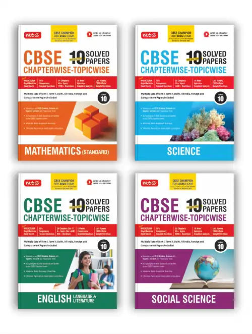 Interactive Notes-Snapshot and Brain Map for deep learning.s 4-in-1 Combo of CBSE Champion’s Mathematics, Science, Social Science, and English is an essential study resource for CBSE Board exams. It has previous 10 years of questions from CBSE Board Exams (2016-2025) in a chapter-wise and topic-wise format. It also comprises video solutions of CBSE Board 2025 and 2024 questions with ideal techniques of solving questions.